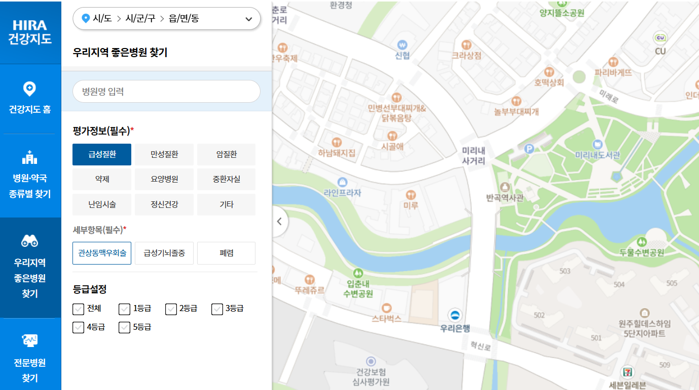 "우리 지역 좋은 병원 찾기" 기능을 통해 진료를 받을 병원을 고르는 데 도움이 될 수 있으며, 가까운 곳에서 편리하게 진료를 받을 수 있습니다.